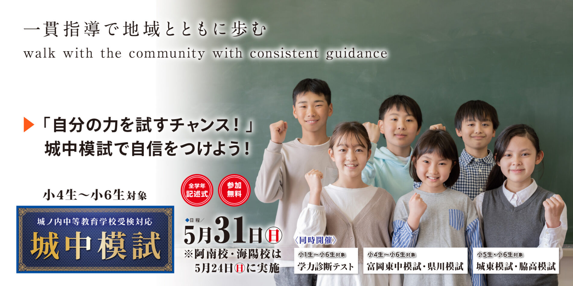 四国進学会は、城ノ内中等教育学校受検において15年連続で、徳島県内No.1の合格者を輩出しています。