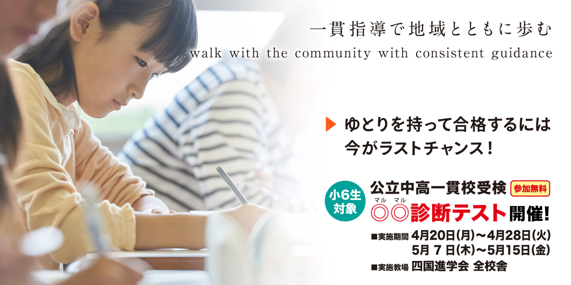 ●上記の映像は、「適性検査にチャレンジ」の映像です。その他「城ノ内中等教育学校の適性検査について」等の映像もあります。詳しくは、四国進学会のYouTubeチャンネルをご覧ください。