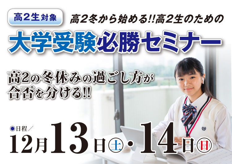 高校2年生の冬休みから大学受験の準備を始めることは、基礎を固め、応用力の土台を築くための理想的なタイミングです。受験まで約1年という時間を確保できるため、焦らずに計画を立てて着実に実力をつけられます。そこで今回のセミナーでは下記の内容をお伝えします。ぜひ、ご参加ください。